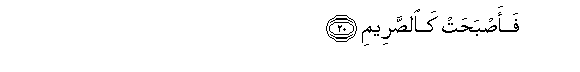 20. So the (garden) became, by the morning, like a dark and desolate spot, (whose fruit had been gathered).