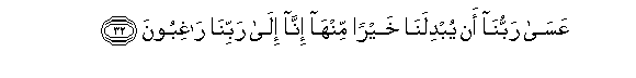 32. AAasa rabbuna an yubdilana khayran minha inna ila rabbina raghiboona