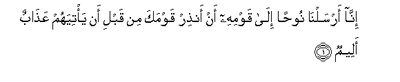 1. Inna arsalna noohan ila qawmihi an anthir qawmaka min qabli an ya/tiyahum AAathabun aleemun