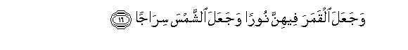 16. WajaAAala alqamara feehinna nooran wajaAAala alshshamsa sirajan
