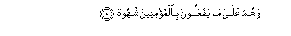 7. Wahum AAala ma yafAAaloona bialmu/mineena shuhoodun