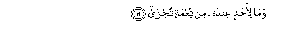 19. Wama li-ahadin AAindahu min niAAmatin tujza