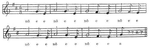 That dress of black oak leaves is the one that flies around her. She has a song which she sings. She sings it in the morning. When the war party used to hear it they would say, "Come, let's run away." Then they always ran off. Here southeast of the middle of the world they used to lie until morning, and then they went home. When there was to be a fight she always sang a song. She sang it in the morning and again when she went to bed. None could affect her by singing or saying formulas. The hearts of the men always went along the way that lays behind this world. The song did it.