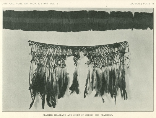 Plate 18 (referred to on page 98 as Pl. 3). Feather headband and skirt of string and feathers.