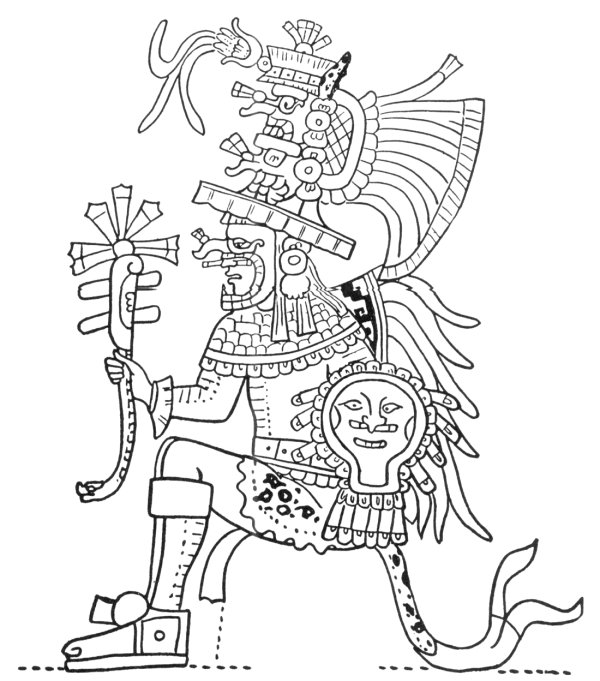 FIG. 3--Mexican warrior occupying the jaguar-seat. Fresco, Temple of the Warriors, Chichen Itzá. (After Ann Axtell Morris.)
