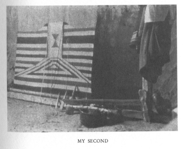 Arrived at my hogan, Cha takes up a reclining position on the length of my bed roll, where she intends to read a thousand-page volume of detective stories. "You know, Cha, I have been weaving at this design two days, and I don't really understand it yet." Instead of reading her detective stories she watches me. We discuss the problem at length, and all too soon it is noon. With elaborate politeness I share the trunk with Cha, and not thinking much of what we eat we scrutinize and criticise every thread of the blanket. Cha was one of