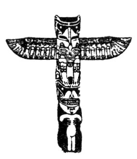 Tsona's eldest son dwelt in the home of his grandparents until he had attained manhood. He then began to build his own lodge and erect a totem pole as a crest, one that could be handed down to future generations in remembrance that it was Tsona who was the first man in the tribe to symbolize the Thunder Bird and bring peace and good will among all people. Accordingly he placed the Thunder Bird on the top, while beneath it was the Grizzly Bear holding the captive slave.