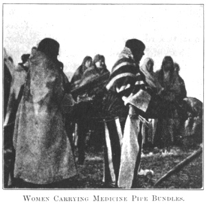 WOMEN CARRYING MEDICINE PIPE BUNDLES.