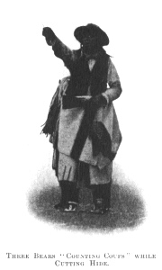 ![]() Click to enlarge THREE BEARS “COUNTING COUPS” WHILE CUTTING HIDE. |