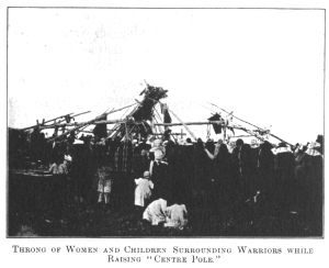 THRONG OF WOMEN AND CHILDREN SURROUNDING WARRIORS WHILE RAISING “CENTRE POLE.”