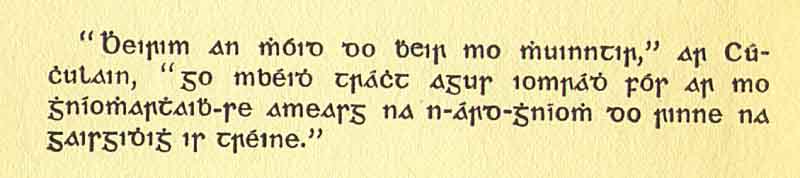 "I SWEAR BY THE OATH OF MY PEOPLE," SAID CUCHULAIN, "I WILL MAKE MY DOINGS BE SPOKEN OF AMONG THE GREAT DOINGS OF HEROES IN THEIR STRENGTH."