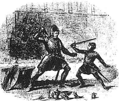 And thereupon King Lludd went after him and spoke unto him thus. "Stop, stop," said he, "though thou hast done many insults and much spoil erewhile, thou shalt not do so any more, unless thy skill in arms and thy prowess be greater than mine."
