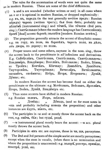 The principal authority on this head is Korš, whose edition of the text is virtually a monograph and metrical reconstruction. With his bold interpolations and omissions it would be premature to agree; his accentual lore one must gratefully follow.
