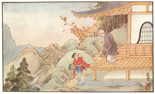 Unfortunately, according to ancient regulations, Koya San temple and mountain were only for men. No woman was allowed to ascend to worship the image of Buddha on this mountain. Thus Ishidomaro's mother had to remain in the village while he went in quest of his father.