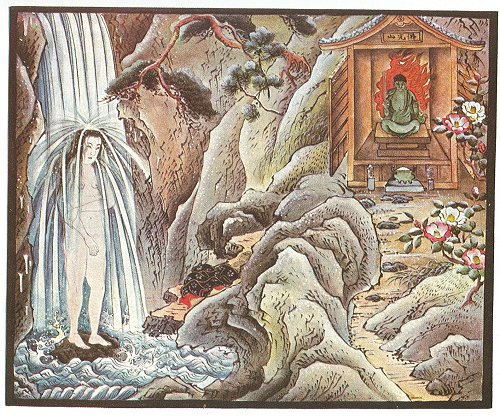 wild and rocky mountain of Shiratake, near the summit of which there was a little shrine dedicated to Fudo, sometimes thought of as the God of Wisdom. There, day after day, she prayed that she might be led to the knowledge that would cure her father, and, though it was now the icy month of January, after so doing she divested herself of clothing and stood for nearly half an hour under the waterfall from which the mountain takes its name, as was the custom of all who wished to impress upon the Deity the earnestness and sincerity of their prayers.