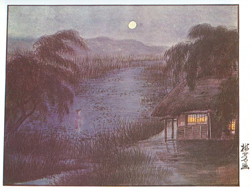 The pond was old and deep, covered with water plants, and had never been emptied within his memory. It was said to contain a kappa (mythical beast, half-turtle, half-man). In any case, there were many terrapin turtle, the capture of which would well repay the cost of the emptying.