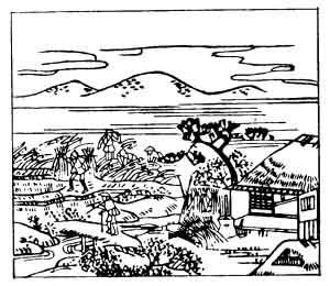 The Emperor Tenchi reigned from A.D. 668 to 671, his capital was Otsu, not far from Kyōto, and he is chiefly remembered for his kindness and benevolence. It is related, that one day he was scaring birds away, while the harvesters were gathering in the crop, and, when a shower of rain came on, he took shelter in a neighbouring hut; it was, however, thatched only with coarse rushes, which did not afford him much protection, and this is the incident on which the verse is founded.