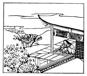 The first and last couplets may mean either 'the blossom's tint fades away under the continued downpour of rain in the world', or 'the beauty of this flower (i.e. herself) is fading away as I grow older and older in this life'; while the third line dividing the two couplets means, that the flower's tint and her own beauty are alike only vanity. This verse, with its double meaning running throughout, is an excellent example of the characteristic Japanese play upon words.