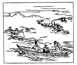 Takamura, a well-known scholar, rose from poverty to riches on being appointed a Custom-house officer for the ships trading to and from China. His enemies reported him to the Emperor as an extortioner and a thief, and he was deported to Yasoshima, a group of small islands off the coast; he is said to have composed this song and sung it to the fishing-boats, as he was being carried off. He was afterwards pardoned and reinstated, dying in the year 852.