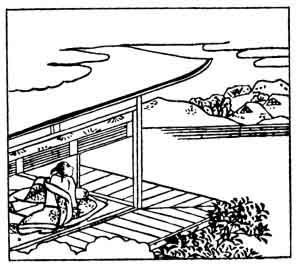 Little is known about this poet, but he is said to have lived some time in the tenth century. Yoshino is a mountain village in the Province of Yamato, famous for its cherry blossoms; at one time it contained the Imperial Summer Palace. In the illustration we see the poet looking across at the village on the hills all covered with snow.