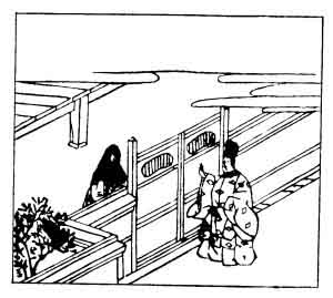 This lady was the daughter of Motoyasu Fujiwara, and the wife of the Regent Kaneie; she was famous for her beauty, and lived in the reign of the Emperor Mura-kami (947-967). It is related, that her husband returned home late one night, and, having to wait a moment or two before she let him in, he angrily reproached her, and she replied with this verse (see illustration).