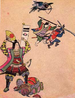 By this time they were down to the seashore, so they climbed into a boat and started off for the island of Akandoji. Just as they were starting there was a flutter of wings and the pheasant alighted in the boat with them.
