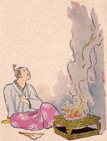 This man declared that there was no temple on that mountain. "There was in my grandfather's time," said the beggar, "for he had been there and had seen the beautiful fire robe with his own eyes."