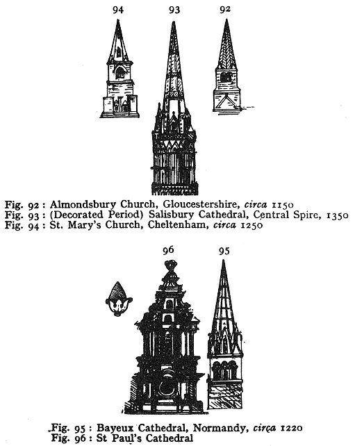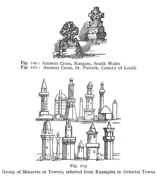 The Architectural Genealogy of the 'Tower' or 'Steeple' in fig. 97, p. 246, exemplifies a parallel of growth between all the uprights, and exhibits