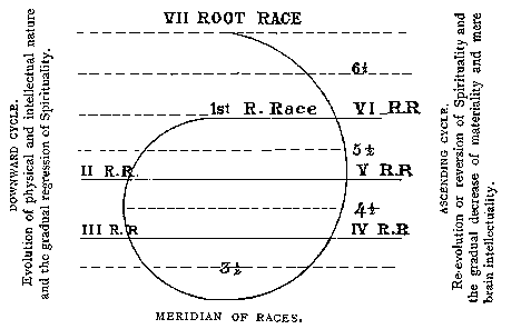 We are only in the Fourth Round, and it is in the Fifth that the full development of Manas, as a direct ray from the Universal MAHAT -- a ray unimpeded by matter -- will be finally reached. Nevertheless, as every sub-race and nation have their cycles and stages of developmental evolution repeated on a smaller scale, it must be the more so in the case of a Root-Race. Our race then has, as a Root-race, crossed the equatorial line and is cycling onward on the Spiritual side; but some of our sub-races still find themselves on the shadowy descending arc of their respective national cycles; while others again -- the oldest -- having crossed their crucial point, which alone decides whether a race, a nation, or a tribe will live or perish, are at the apex of spiritual development as sub-races.