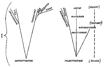 The somewhat complicated problem relating to the "Origin of Species," -- more especially of the varied groups of fossil or existing mammalian fauna -- will be rendered less obscure by the aid of a diagram. It will then be apparent to what extent the "Factors of Organic Evolution," relied upon by Western biologists,* are to be considered as